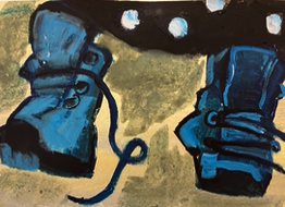 2023 zu Fuss, Mischtechnik auf Papier 15 x 21