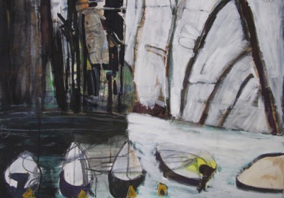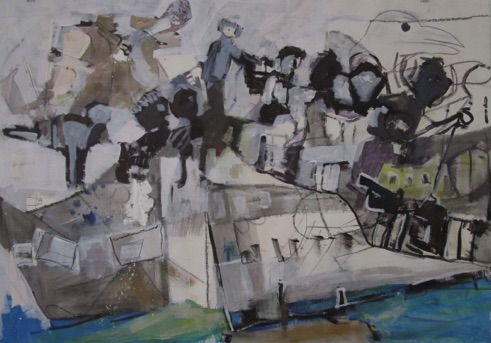2019 Flucht Mischtechnik auf Papier 70 x 100