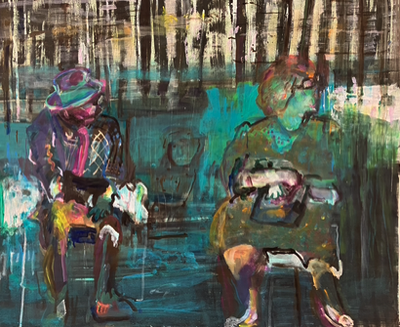2021 auf der Bank Acryl auf Karton 30 x 40